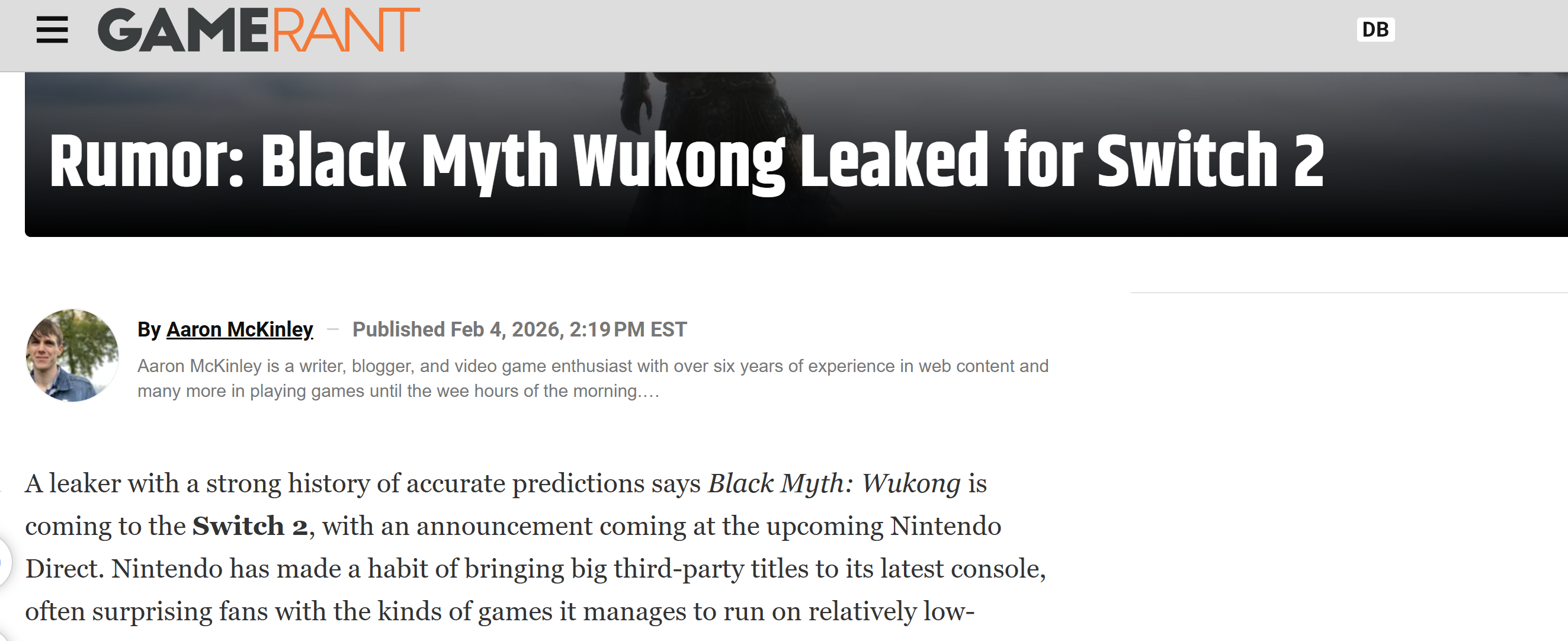 据悉,这一消息由爆料人Nate the Hate在其播客节目中披露。他在谈及即将召开的“任天堂直面会:合作伙伴专场发布会”时表示,已确认《黑神话:悟空》将登陆任天堂这款最新家用游戏主机,但暂无法确定该作是否会在2月的直面会上正式亮相。