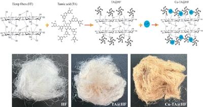 单宁酸与铜离子改性汉麻纤维的制备原理及外观形貌变化。