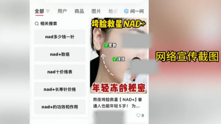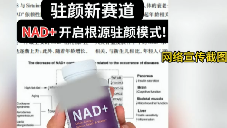 三甲医院专家表示,NAD+即烟酰胺腺嘌呤二核苷酸,是人体细胞“能量引擎”,参与能量代谢等功能。该成分虽然有抗衰潜力,但功效却被夸大了。国药监网站显示,NAD+注射药仅获批用于白细胞减少、冠心病等辅助治疗,抗衰用途未获批。