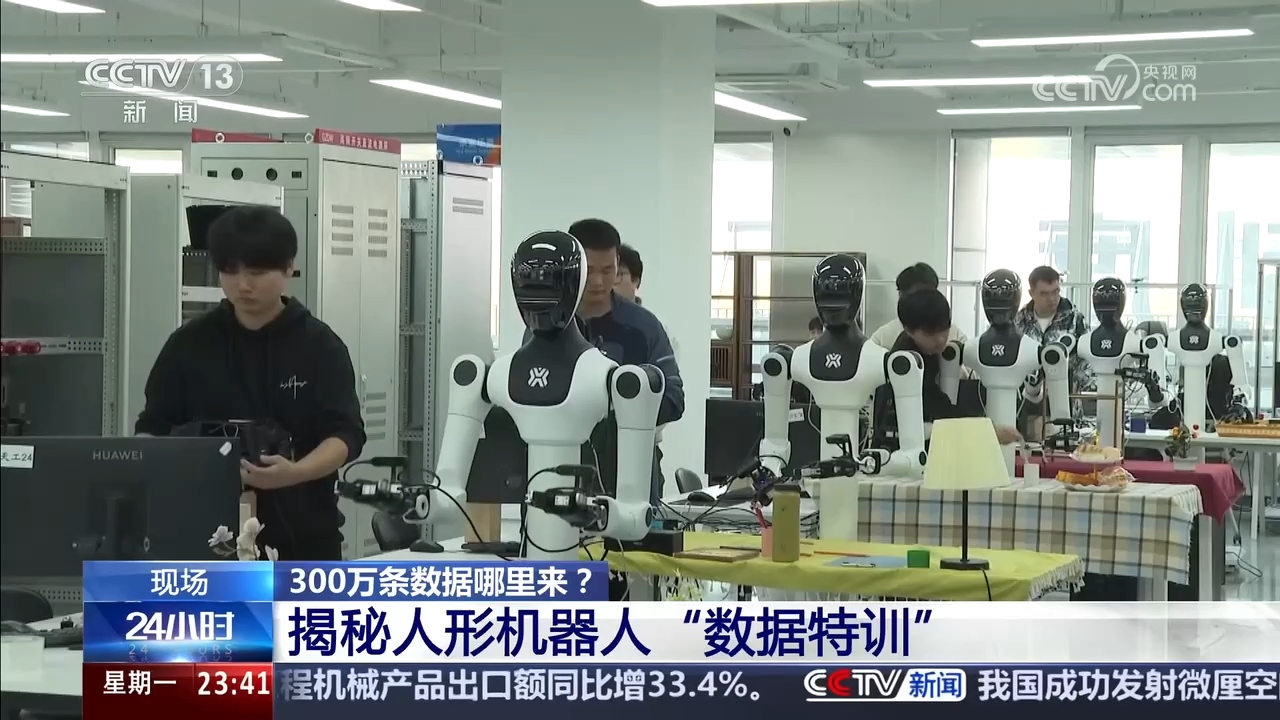 总台记者 马欣欣:在搭建的是“儿童房”的场景中,模型训练师正在操控机器人去把这个反了的袜子给翻过来。完成这些动作的同时,也会实时采集这些机器人关节角度值、运行轨迹等多个数据,一共300到1000次才能完成一个动作的数据采集。