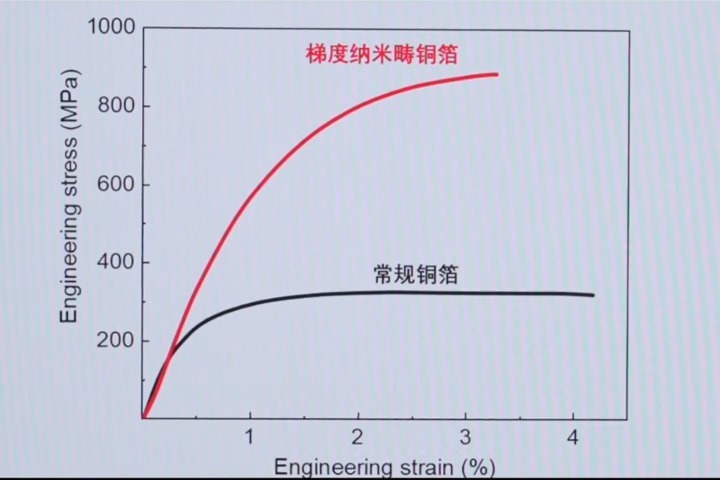 强度飙升:普通工业铜箔抗拉强度大约在300–600兆帕,新研发的“超级铜箔”抗拉强度能达到900兆帕,比常规铜箔强了大约两倍。 导电无损:“超级铜箔”不仅强度大幅提升,导电率依然高达高纯铜的90%。和强度相当的传统铜合金比,它的导电能力足足高出约两倍,真正做到了又强又导电,二者兼得。