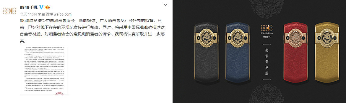 此外,8848表示,在电视台等各大媒体的广告上,没有发现宣传用词不规范的问题,请消费者放心。并称,8848手机愿意接受中国消费者协会、新闻媒体、广大消费者及社会各界的监督。